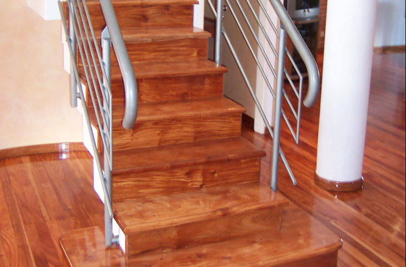 Además todos los miembros de la familia que se dirigen a diferentes ambientes de la planta superior transitan la misma escalera. Esto genera un desgaste diferente que el que se le ocasiona a un piso. Es por ello que los materiales empleados siempre deben ser seleccionados entre los de mayor resistencia y nunca optar por lacas de bajo transito, o transito mediano.